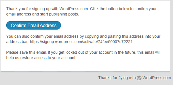 Step 3: Check the confirmation mail that you will receive on your Email ID and click on “Confirm Email Address”. Clickinng this link will successfully create your account with WordPress.
