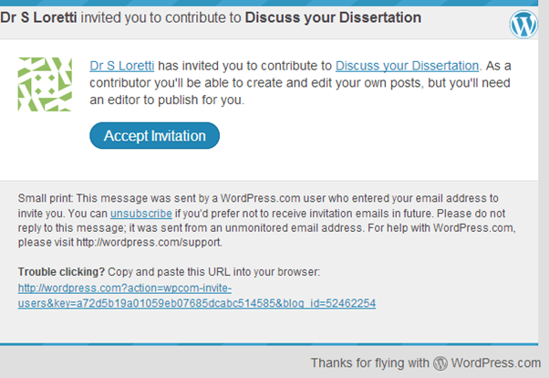 Step 5: You will now receive an invitation from our service provider to post your query or article on the site and start a new thread for further discussions. On accepting the invitation, your account with Discuss Your Dissertation will be created.