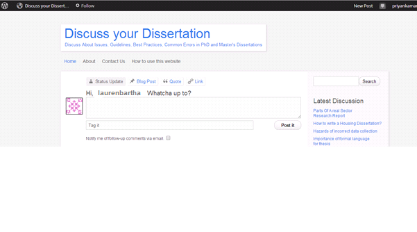 Discuss Your Dissertation is a platform where you can read and discuss all about dissertations, from guidelines to writing and presentation tips, common errors to best sample dissertations. You can discuss it all.